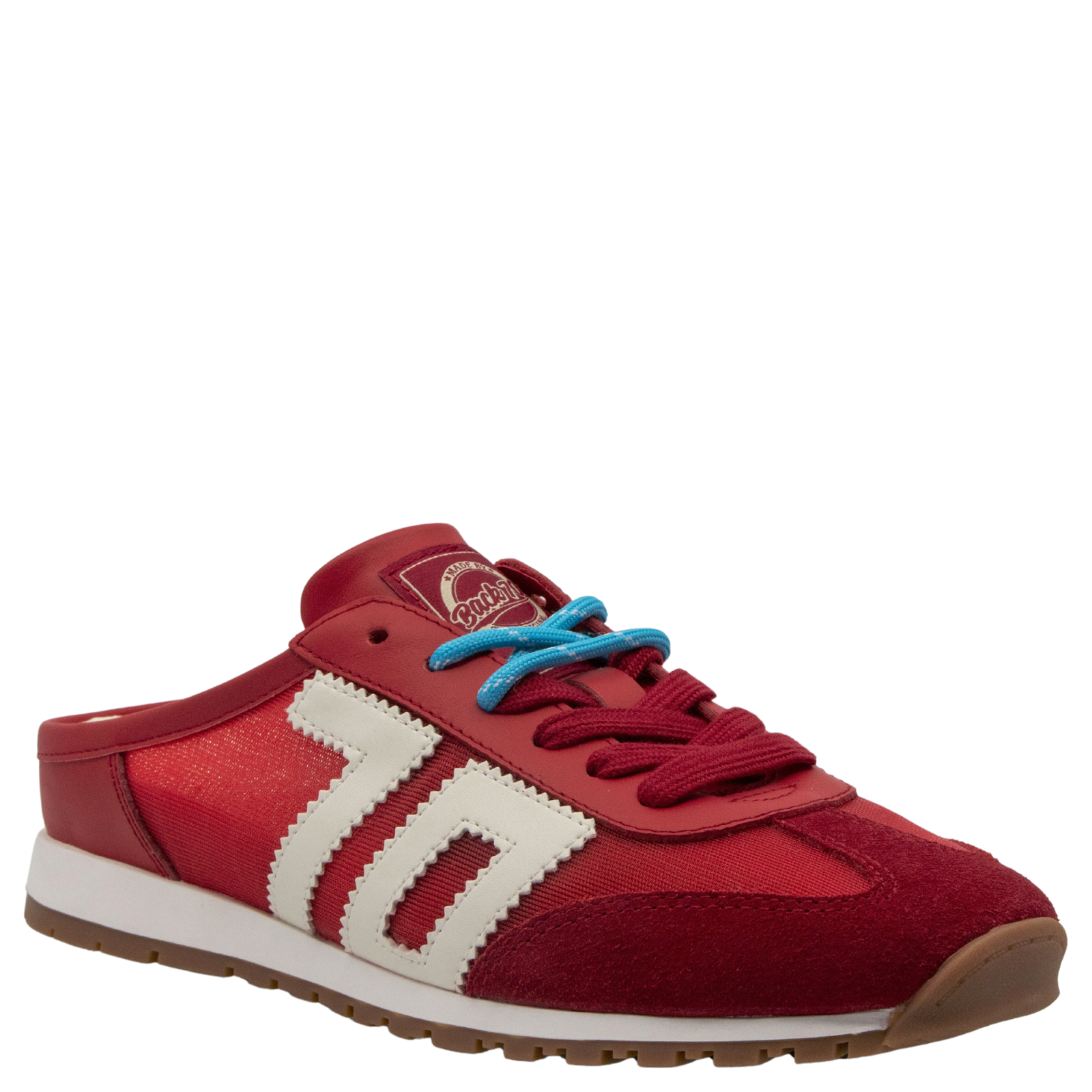 The Back 70 sneaker mule blends ease with attitude in an opened-up, running-inspired silhouette. Crafted with elevated sporty materials, this sneaker mule features performance-driven details softened by vintage athletic cues. Multi-color laces add a curated, one-of-a-kind feel, while Back 70's signature icon anchors the look in modern heritage. The open-back design delivers effortless wear without sacrificing the structure and comfort of a true sneaker.