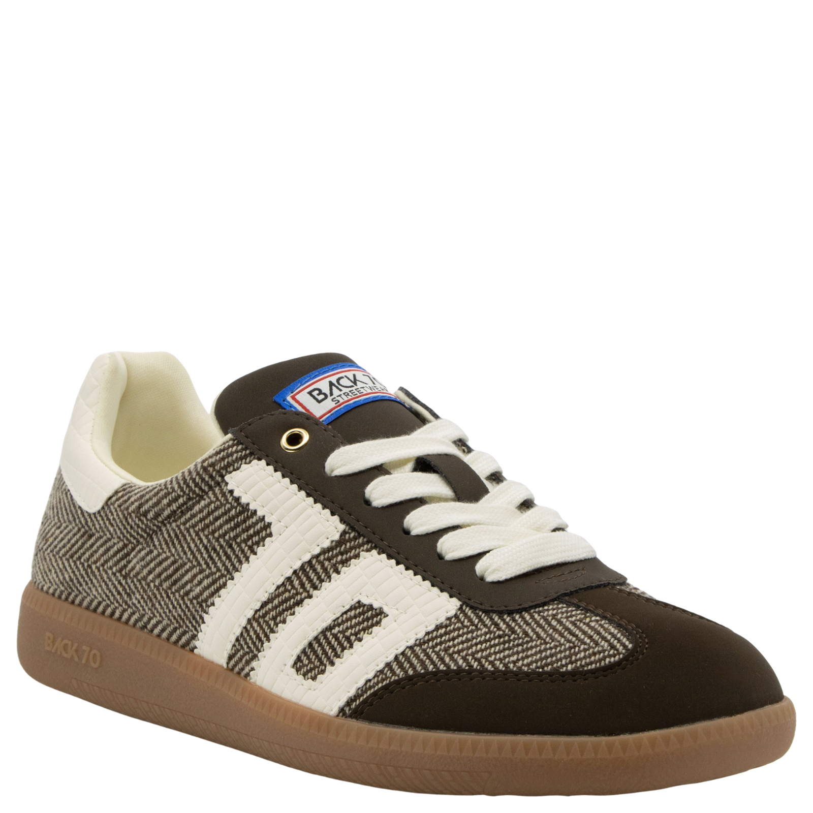 Cloud F serves up prep-school vibes with a chic twist - crafted in rich brown tweed with a velvety suede toe cap with some serious old money energy. This vintage-inspired sneaker blends classic textures with a sporty silhouette, finished off with a gum rubber sole and the iconic Back 70 mark. It's designer coded, a little nostalgic, and totally wearable. Ideal for women searching for brown preppy sneakers that feel tailored, timeless, and posh with an edge.